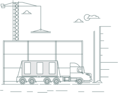 | Assembled in a factory setting | Delivered to jobsite | Lifted into place | A connected iUnit™ |
